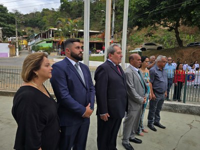 ✔ Às 9h, participaram do ato cívico realizado em frente à sede da Prefeitura, e, Trajano de Moraes.